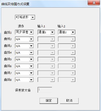 ?7) 設置曲線1類型為同步誤差,輸入1和輸入2分別為通道1和通道2,如下圖: