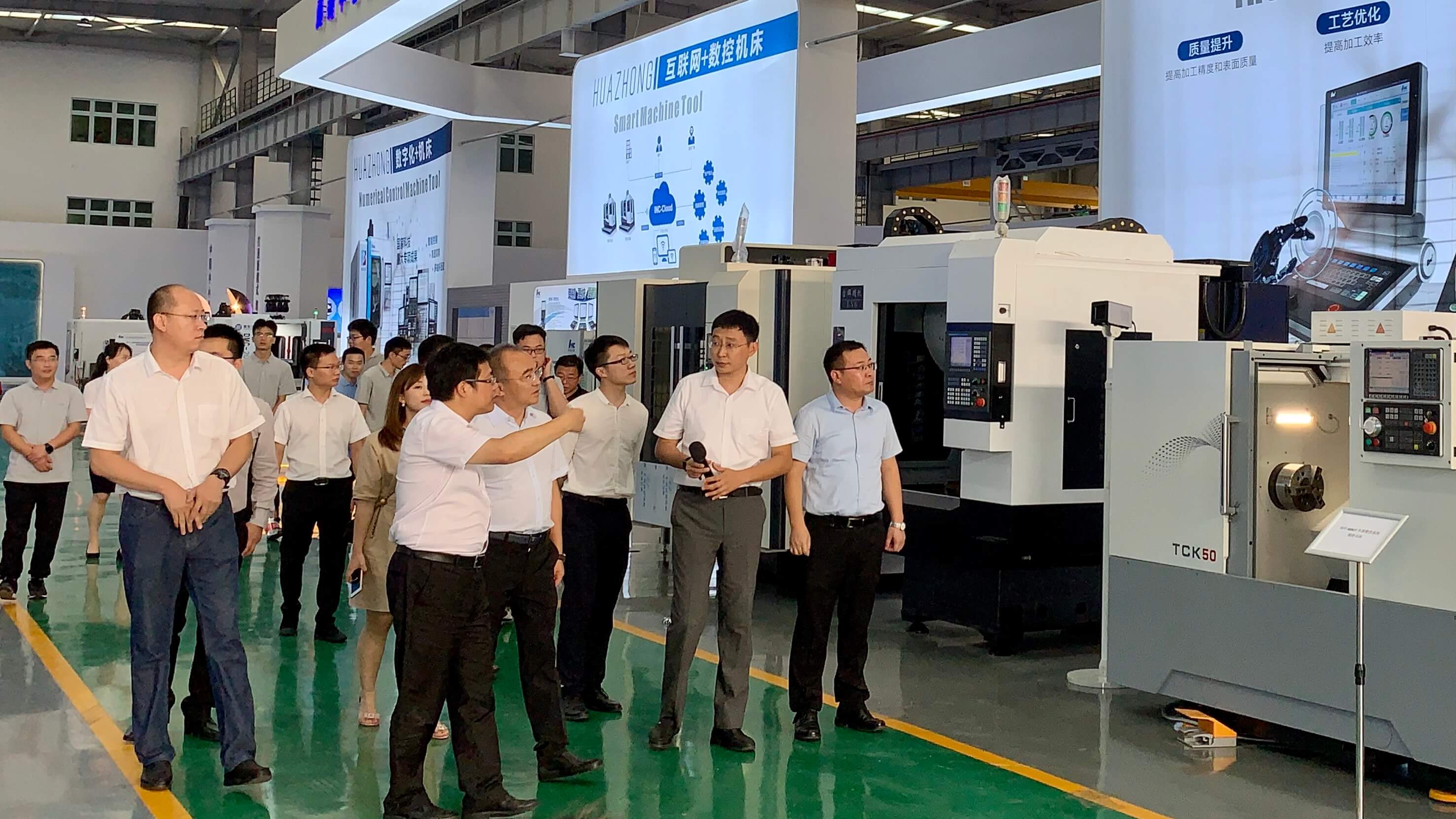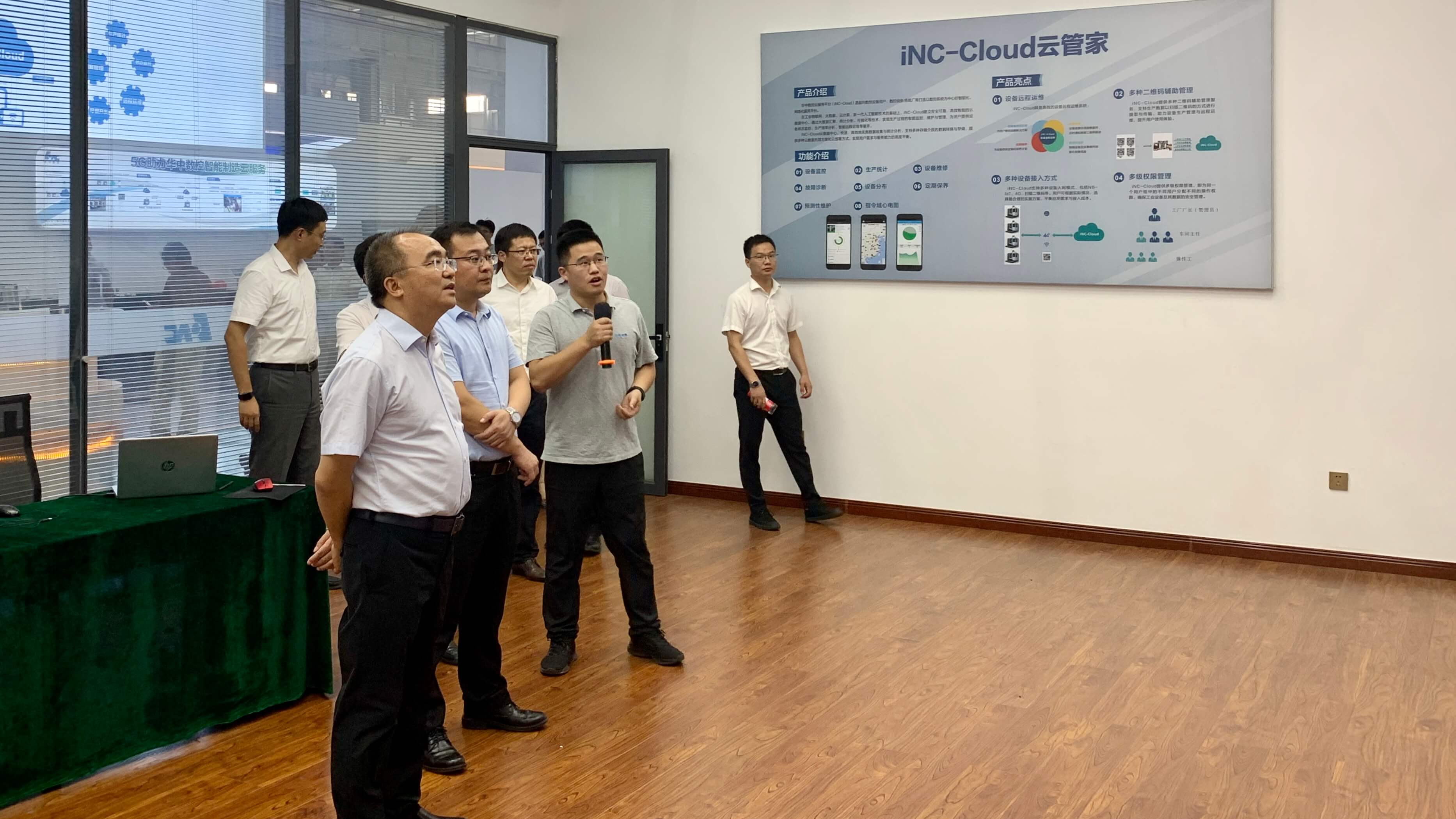 下午,在滕州市委領導樊猛市長的陪同下,閻董事長一行參觀了山東華數智能科技有限公司。山東華數坐落于滕州墨子科創園,是武漢華中數控旗下的全資子公司,是集數控系統、數控機床、智能制造技術研究開發、應用服務和人才培養于一體的創新公共服務平臺與研究開發基地。武漢華中數控股份有限公司董事長陳吉紅首先介紹了華中數控在山東的布局和發展,特別是與滕州機床企業的合作。陳董表示,華中數控將以山東華數公司及研究院為區域中心,將研發做深,將產品做實,深耕山東市場,助力傳統制造業的轉型升級??疾靾F參觀了智能制造生態展廳,山東華數總經理范業鵬重點介紹了山東公司及研究院的建設情況和主要工作成果,市場部夏昌穎部長介紹了iNC-Cloud大數據中心的運營情況。?