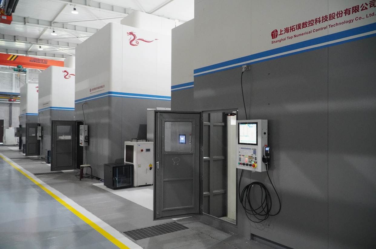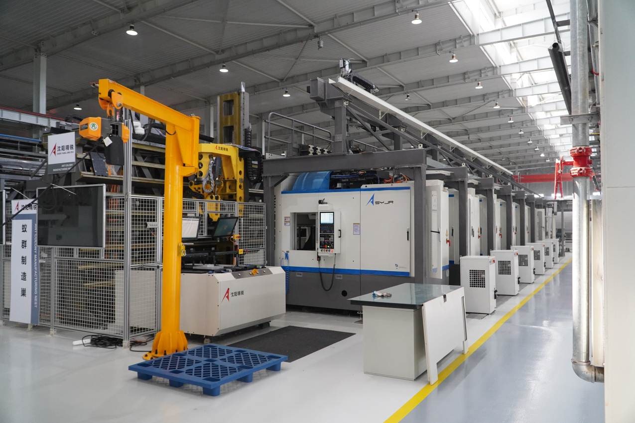 由沈陽飛機工業(yè)集團有限公司、沈陽航空產(chǎn)業(yè)集團、沈陽航空制造有限公司、華中數(shù)控等企業(yè)合作建設(shè)的沈陽航空復(fù)雜結(jié)構(gòu)件智能制造生產(chǎn)基地,是國內(nèi)航空航天領(lǐng)域首條全部應(yīng)用全國產(chǎn)高檔數(shù)控設(shè)備的智能制造生產(chǎn)線,該基地主要加工航空航天復(fù)雜零件。整條產(chǎn)線機床設(shè)備共六十余臺,其中高檔五軸設(shè)備四十余臺,絕大部分配置華中8型數(shù)控系統(tǒng)。該項目的主要技術(shù)特點是“三國六化一核心”,華中8型數(shù)控系統(tǒng)的高速、高精、智能化功能實現(xiàn)了綜合應(yīng)用。