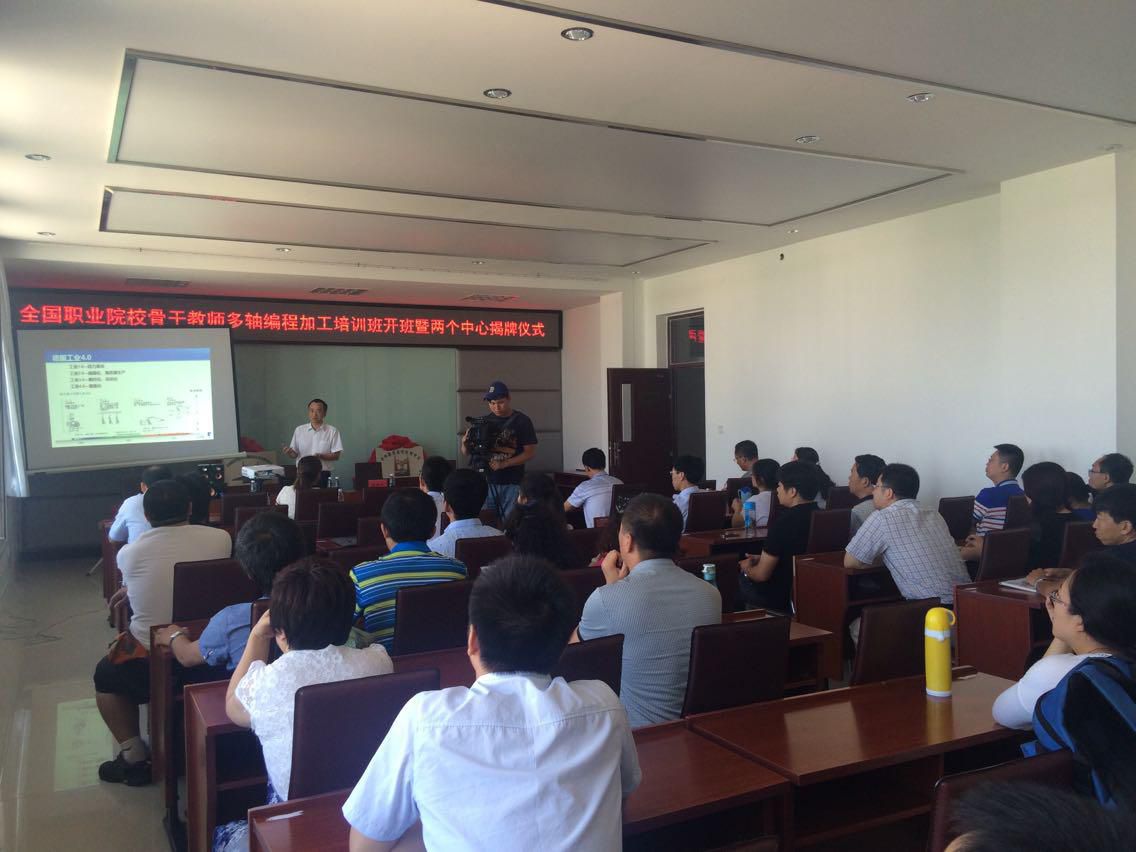 2015年7月22日,由武漢華中數控股份有限公司與赤峰工業職業技術學院合作舉辦的“全國職業院校骨干教師多軸編程加工培訓班”開班典禮暨“兩個中心”揭牌儀式在赤峰工業職業技術學院成功舉行。