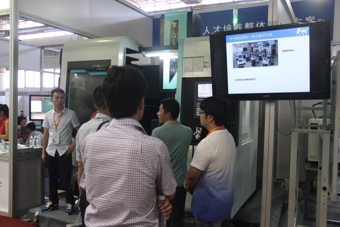 武漢華中數控股份有限公司在為全國職業(yè)院校技能大賽數控項目比賽提供比賽平臺和技術支持的同時,積極參加了本次展會。本次展品為理實一體化教室、機器人、五軸聯動數控系統機床展示、華中數控8型高檔智能數控系統和綜合模擬仿真實驗室,這些產品吸引大批參會人員問詢和參觀。