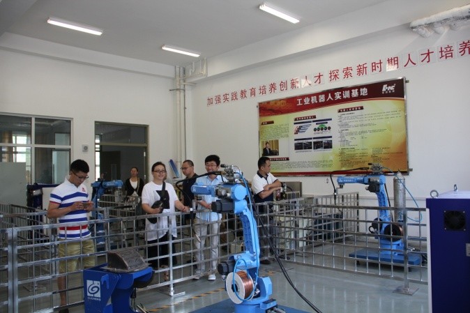 典禮儀式結(jié)束后,全體與會人員合影留念,并且一起參觀了學(xué)院實訓(xùn)車間,對學(xué)院良好的教學(xué)實訓(xùn)條件和敬業(yè)勤勞的教師隊伍留下深刻印象。全體培訓(xùn)教室就工業(yè)機器人、智能制造等相關(guān)專業(yè)的教育教學(xué)、實訓(xùn)實踐等內(nèi)容進(jìn)行了交流和研討。本次培訓(xùn)為期10天,將主要就工業(yè)機器人指令、電氣系統(tǒng)、控制原理、離線編程、操作、拆裝等內(nèi)容進(jìn)行培訓(xùn),培訓(xùn)指導(dǎo)工作由校企合作雙方的近10位老師共同完成,其中包括華中數(shù)控精心選派的孫海亮、石義淮、楊威、劉豐等具有豐富教學(xué)、實踐經(jīng)驗的老師。