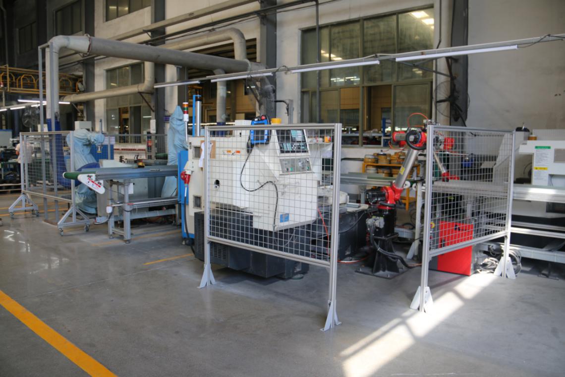 走近仔細一看,原來這些神秘俠客是一臺臺穿著防塵服的華數機器人,它們的主要工作是機器人打磨和機床上下料。