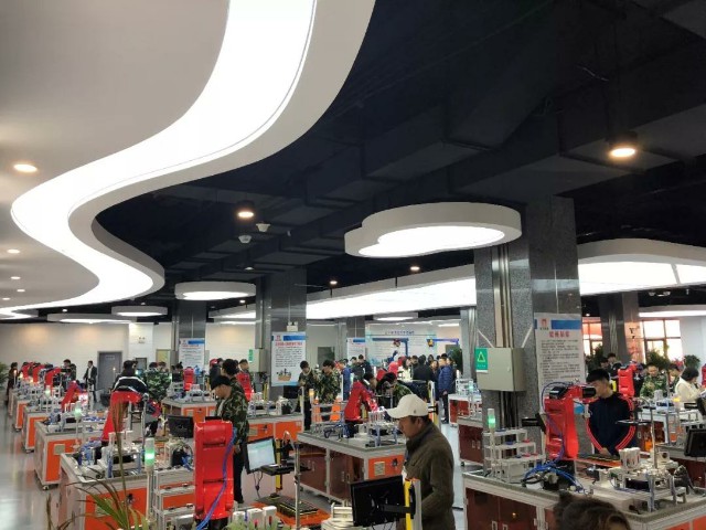 ? ? ??華中數(shù)控(遼寧)智能制造應(yīng)用示范基地由武漢華中數(shù)控股份有限公司與遼寧東升共同出資打造,目前東北地區(qū)規(guī)模最大、設(shè)備最為齊全的工業(yè)機(jī)器人實(shí)訓(xùn)基地。基地占地面積近2萬平方米,包括媒體教室、實(shí)訓(xùn)室、技能訓(xùn)練中心等教學(xué)場(chǎng)所,引進(jìn)工業(yè)機(jī)器人操調(diào)實(shí)訓(xùn)平臺(tái)、工業(yè)機(jī)器人機(jī)電一體化拆裝工作站、智能制造生產(chǎn)線、五軸加工中心以及3D打印機(jī)等先進(jìn)智能制造設(shè)備60余套,可同時(shí)容納300人進(jìn)行實(shí)訓(xùn)。