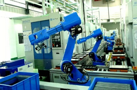 批量配置華中8型數控系統的高速鉆攻中心和華數機器人