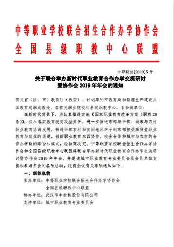關(guān)于聯(lián)合舉辦新時(shí)代職業(yè)教育合作辦學(xué)交流研討暨協(xié)作會 2019 年年會的通知