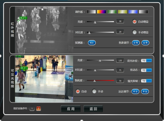 2、軟件:配套完全自主開發的系統軟件“紅外智能體溫監控系統”,自主設計、操作簡便的軟件系統主界面,各項參數設置界面,具備獨特的系統功能,例如:系統狀態自檢功能,包括對黑體狀態、環境參數、網絡狀態等參數的自動檢測;根據系統反饋參數自適應調整,歷史記錄瀏覽,報警圖片推送,高清視頻信號后傳,人臉識別誤報警排除等多項功能;同時能夠支持后臺數據接口對其他數據系統平臺開放對接,包括與海關的智慧衛檢系統對接功能、旅客艙單系統對接功能等,并且由于完全自主開發系統軟件,可支持免費升級和調整定制的海關各種定制化需求。一、產品名稱: