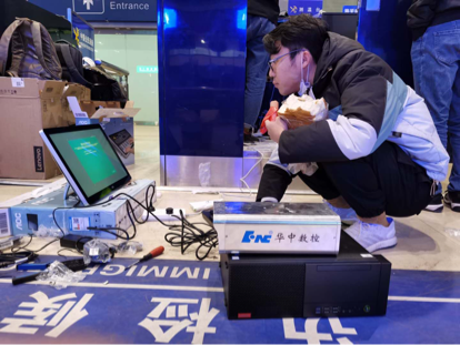 ? 華中數控工程師在北京西客站國際列車出入境聯檢大廳現場安裝設備?