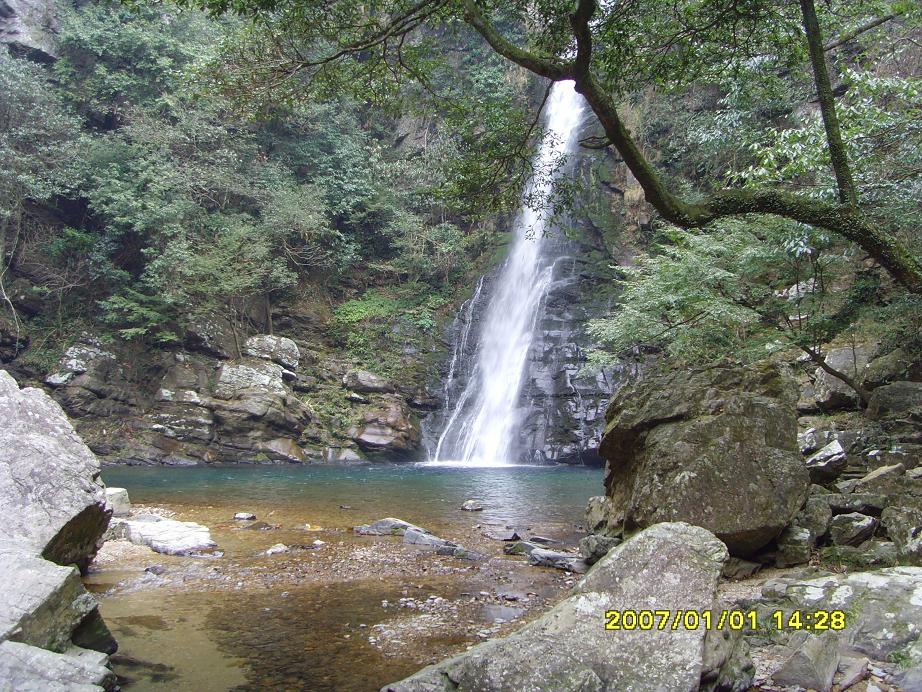 從黃洋界下山,我們慕名來到久負(fù)盛名的龍?zhí)镀俨既海喾Q“五龍?zhí)丁保@是井岡自然風(fēng)景最為壯觀佳綺麗的地區(qū)之一。五龍?zhí)豆灿形逄段迤伲瑥纳系较碌谝惶睹逃裉叮渡嫌斜逃衿伲险聦挘杩诊w瀉,落差達(dá)67米,是五瀑中最高的一個(gè),下落深潭,潭水碧綠,清澈晶瑩,猶似碧玉。第二潭名金鎖潭,潭上有鎖龍瀑,古名黃龍瀑。第三潭名珍珠潭,潭上有珍珠瀑,瀑水從30米高的陡崖上飛下,中間遇一巨石阻擊,水花飛濺,如噴珠吐玉。第四潭名飛鳳潭,潭上有飛鳳瀑急流直下,如鳳凰展翅,飛入潭中。第五潭名玉女潭,潭上有玉女瀑,似一窈窕少女,正在翩翩起舞,真是惟妙惟肖。再往下有紅軍洞,洞內(nèi)能容百余人,在當(dāng)年反圍剿斗爭(zhēng)中,曾住過紅軍傷病員,今遺跡仍在。