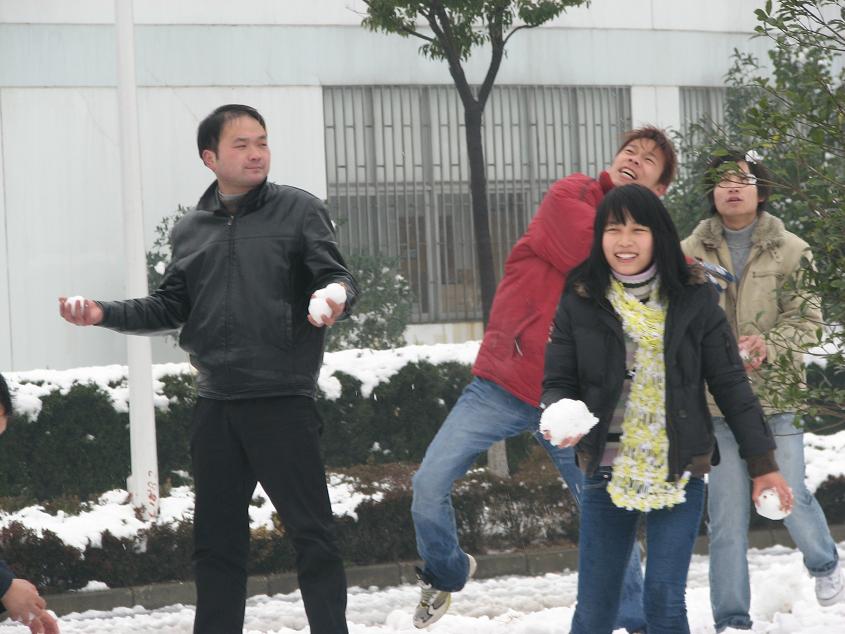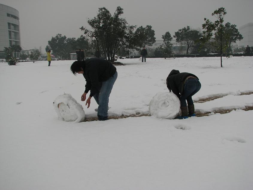 他們好象不是在堆雪人,而是在卷被子哦
