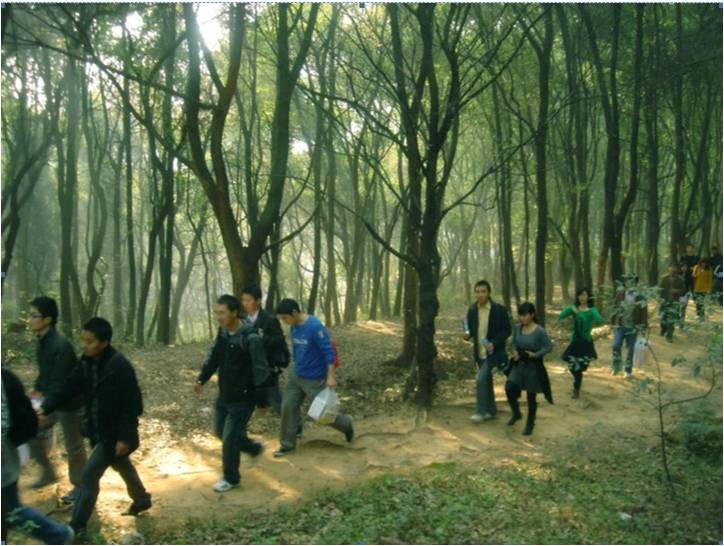 8點(diǎn)整,大家都相繼趕來,臨出發(fā)前,由于獎品太多又重,男同事們都很自覺的挑起重?fù)?dān),其中涂濟(jì)和姜文禮表現(xiàn)最為突出。8點(diǎn)30,遠(yuǎn)足活動開始,我們從華中科技大學(xué)南大門出發(fā),途經(jīng)華中科技大學(xué)、地質(zhì)大學(xué)、中航181、郵科院、南望山、東湖、植物園,大家積極響應(yīng),途中你追我趕,互幫互助。行至南望山頂,我們留下來合影,給我們此次活動和整個人生留下美麗的一刻。