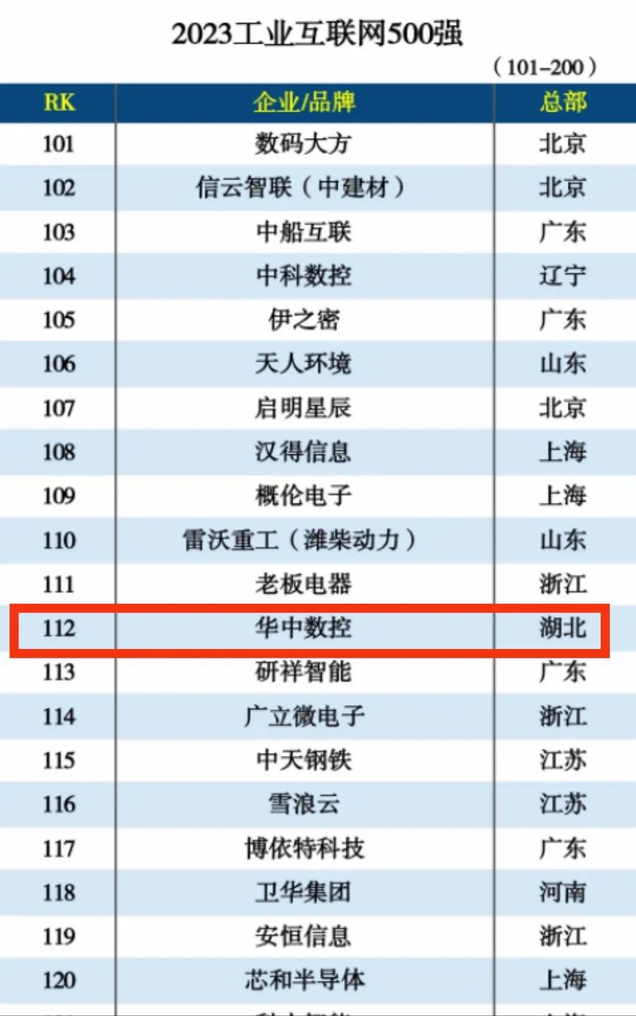 2023工業(yè)互聯(lián)網(wǎng)500強企業(yè)名單出爐!華中數(shù)控位列112名