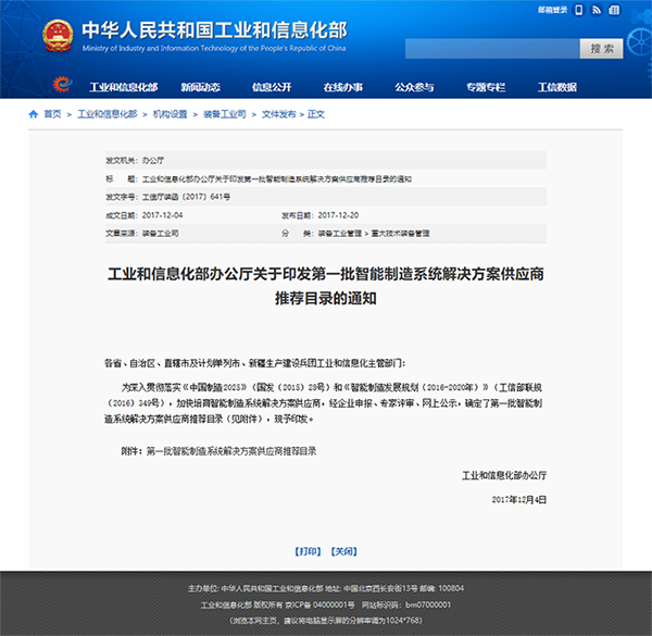 2017年12月20日,工信部正式發布了關于印發第一批智能制造系統解決方案供應商推薦目錄的通知,為深入貫徹落實《中國制造2025》和《智能制造發展規劃(2016-2020年)》,加快培育智能制造系統解決方案供應商,經企業申報、專家評...