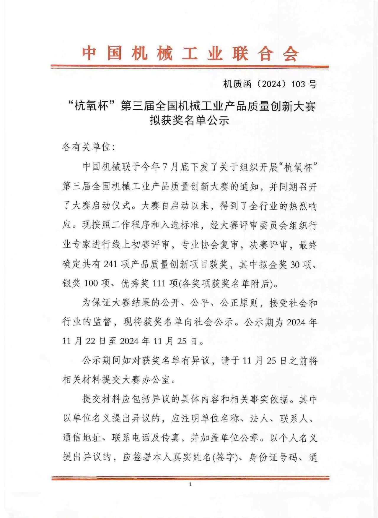 今年7月,中國機械工業(yè)聯(lián)合會下發(fā)了關(guān)于組織開展“杭氧杯”第三屆全國機械工業(yè)產(chǎn)品質(zhì)量創(chuàng)新大賽的通知,并同期召開了大賽啟動儀式,得到了全行業(yè)的熱烈響應(yīng)。經(jīng)大賽評審委員會組織行業(yè)專家進行線上初賽評審、專業(yè)協(xié)會復(fù)審、決賽...